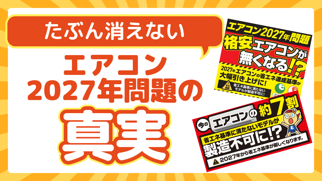 2027年問題とは、エアコンの省エネ基準が一段階厳しくなることを指します。車でも燃費規制、排ガス規制などありますよね?それのエアコン版と思っていただけたら。