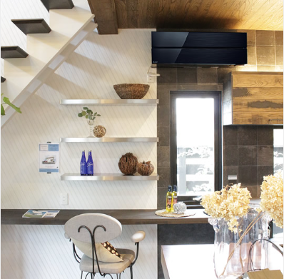 黒いエアコンは家電というより家具の一部のように見えるのが特徴。
