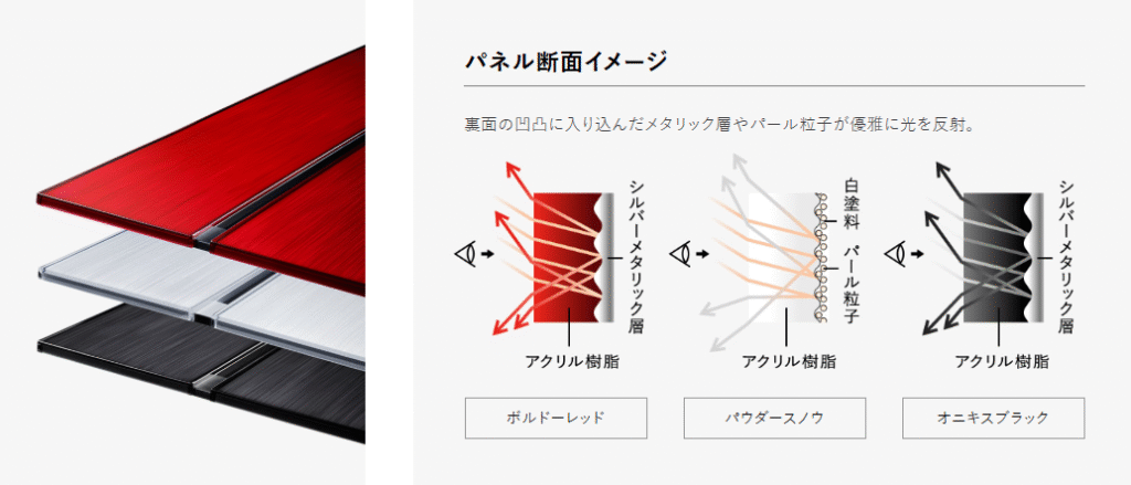 - メタリックブラック:金属的な艶があり、スタイリッシュ