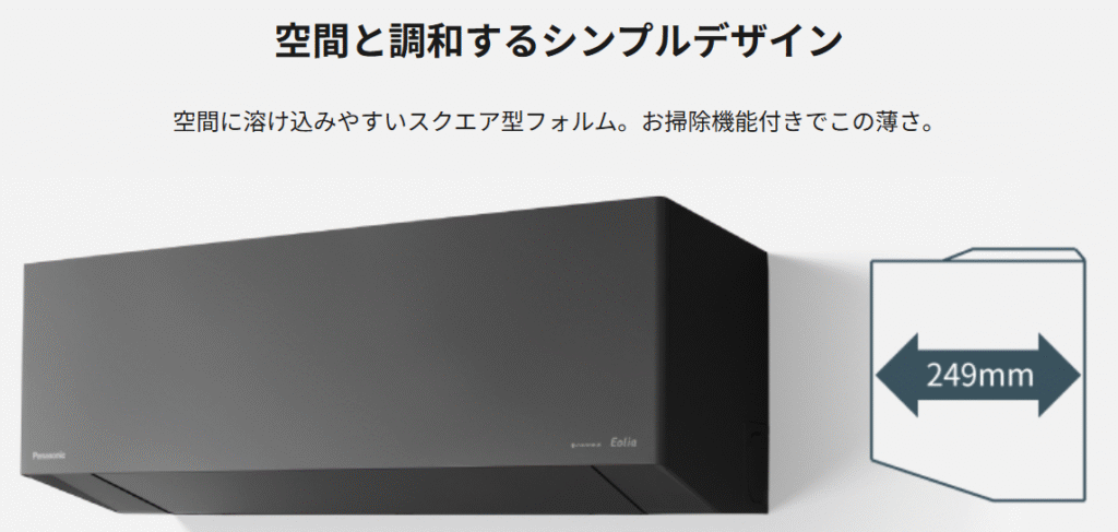 エアコンではなくインテリアの一部をコンセプトにした、フラットでシンプルなデザインが特徴です。