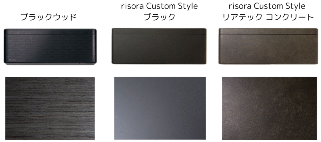 - ダイキン:艶消し仕様のマット調のブラック。同じブラックでも何種類かあります!