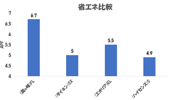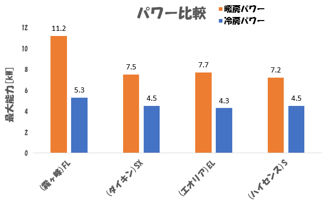 ※14畳用エアコンで比較しています。