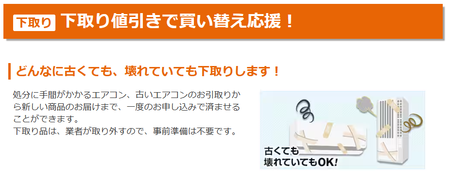 - 古いエアコンの取り外しが無い人(下取りがない人)