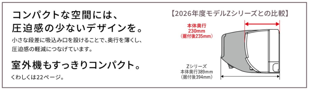 AXVシリーズは奥行がコンパクトなので外観上のメリットもあり、且つ室内機の落下リスクも減らすことができます。落下リスクを考えると子供部屋や寝室などに適しているともいえそうです。