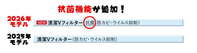 細か~~い部分にはなりますが、フィルターに抗菌機能が追加されています!